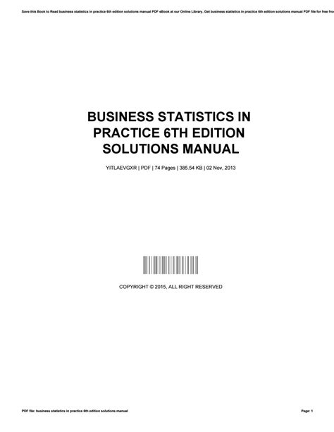 Read Online Business Statistics In Practice 6th Edition Solutions Manual PDF online is a convenient and frugal way to read Business Statistics In Practice 6th Edition Solutions Manual you love right from the comfort of your own home. Yes, there sites where you can get PDF "for free" but the ones listed below are clean from viruses and completely legal to use.